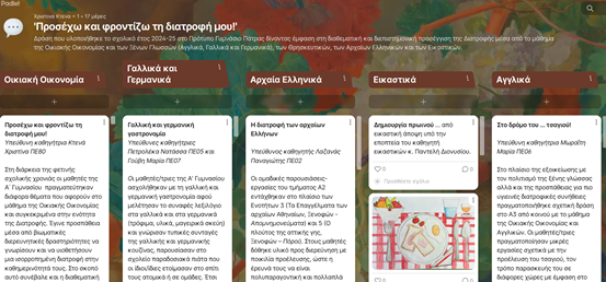 Με αφορμή την ενότητα «Διατροφή και υγεία» του μαθήματος Οικιακής Οικονομίας της Α΄ Γυμνασίου πραγματοποιήθηκε καινοτόμος δράση που είχε ως κύριο στόχο την υιοθέτηση σωστών διατροφικών συνηθειών από τους μαθητές/τριες στην καθημερινότητά τους. Έγινε διαθεματική προσέγγιση του θέματος και με τη συμμετοχή άλλων μαθημάτων. Μια μικρή ανασκόπηση της δράσης μπορείτε να δείτε εδώ.