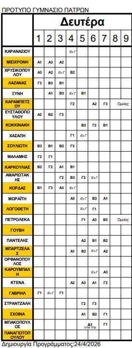 Πρόγραμμα Δευτέρας 27 Απριλίου 26 Απριλίου, 2026 Πλοήγηση άρθρων Προηγούμενο: Ανάρτηση τυχαίου αριθμού υποψηφίωνΕπόμενο: Πρωταθλητές και στο Σκάκι!!!